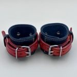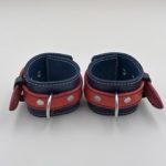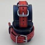Black and Orange Handmade Leather Wrist Cuffs with Orange & Black Stitching. Stainless Steel Fittings. SKU C013. £55.00