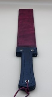 Burgundy 2 ply Handmade Leather Governor Strap with Black Leather Handle and Black Stitching. 6.5cm Wide 43cm Long. SKU ST000. £50.00