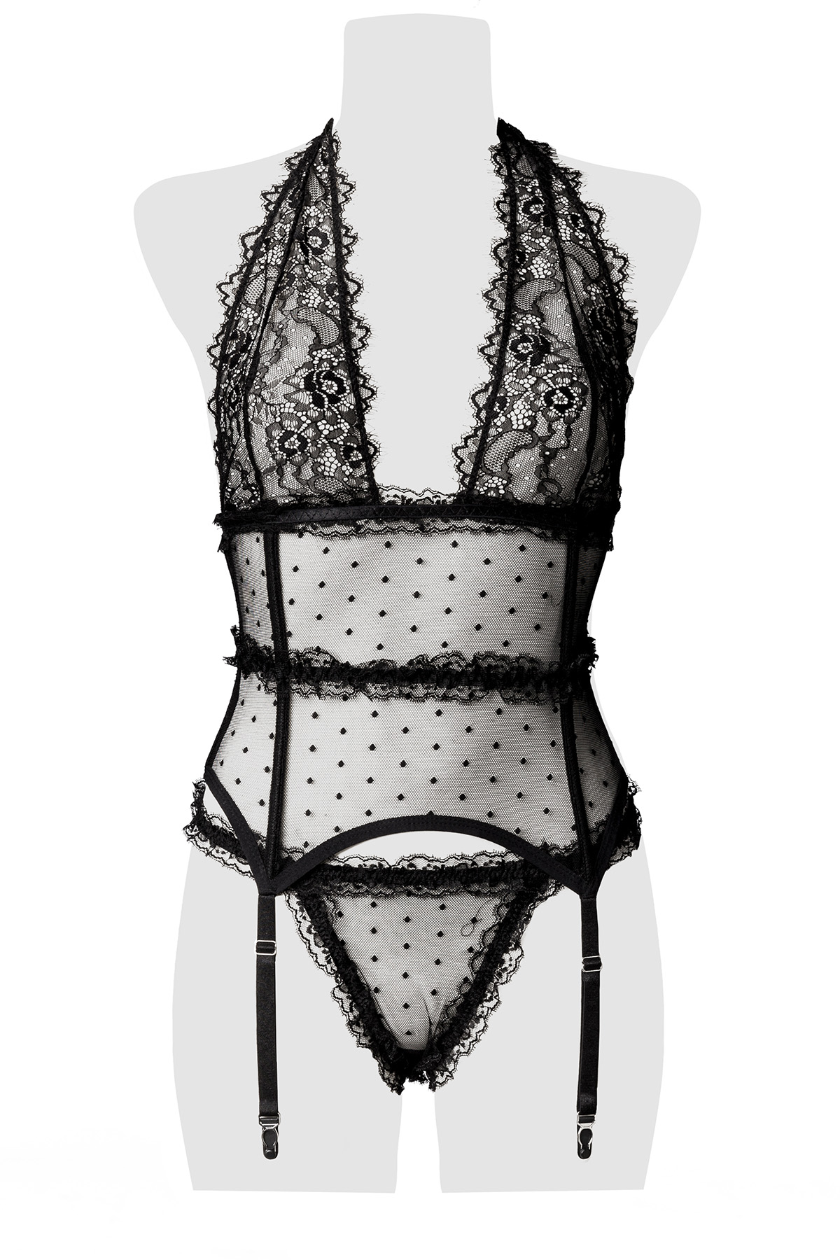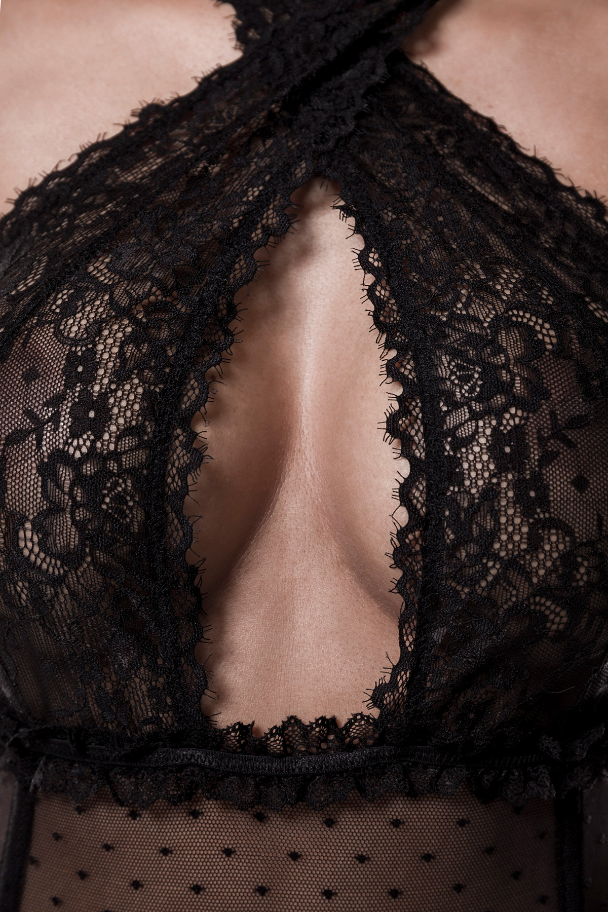 - Top made of net and fine lace