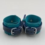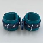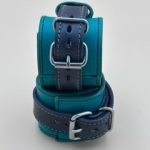 Green and Black Handmade Leather Wrist Cuffs with Black & Green Stitching