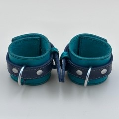 Green and Black Handmade Leather Wrist Cuffs with Black & Green Stitching. Stainless Steel Fittings. SKU C020. £55.00