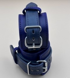 Purple and Black Handmade Leather Wrist Cuffs with Purple & Black Stitching. Stainless Steel Fittings. SKU C014. £55.00
