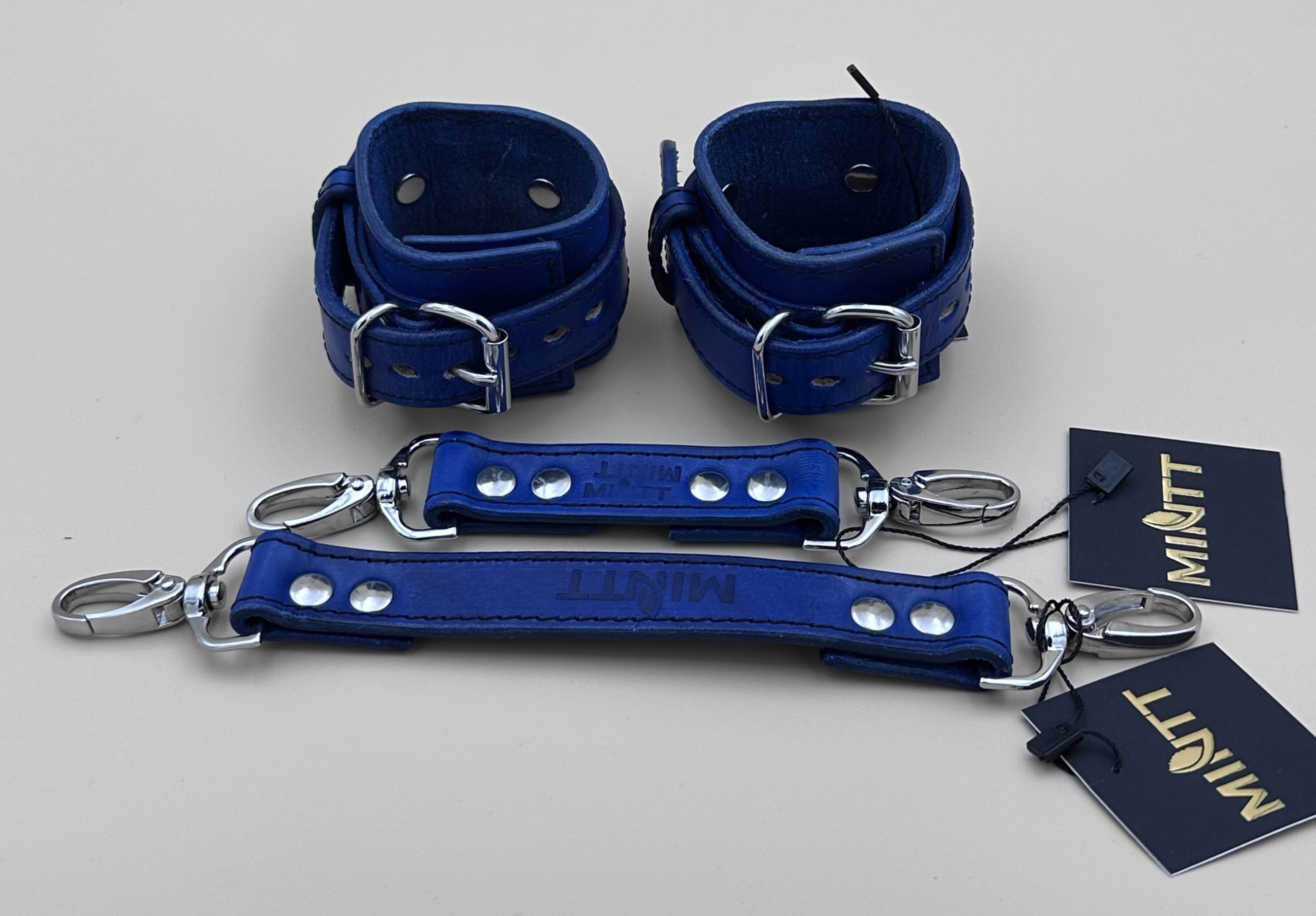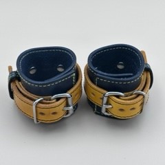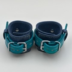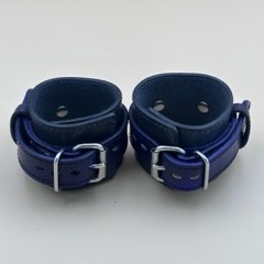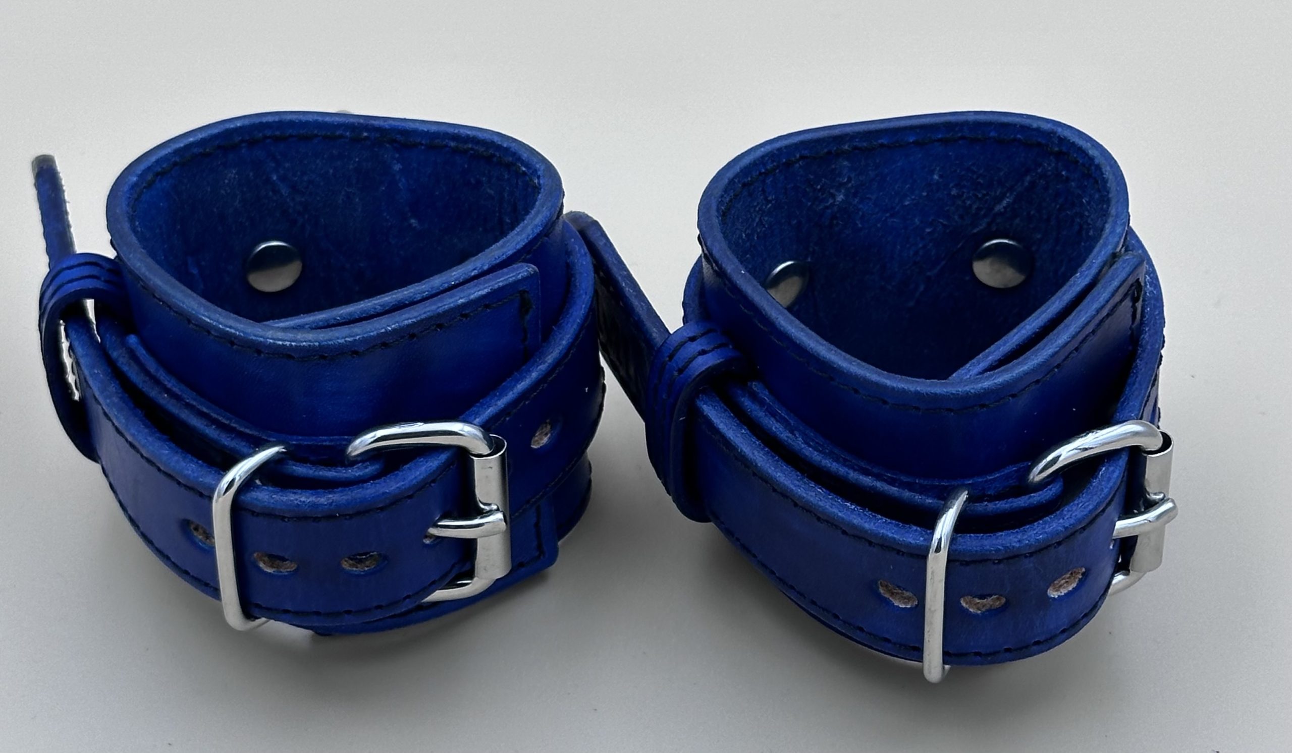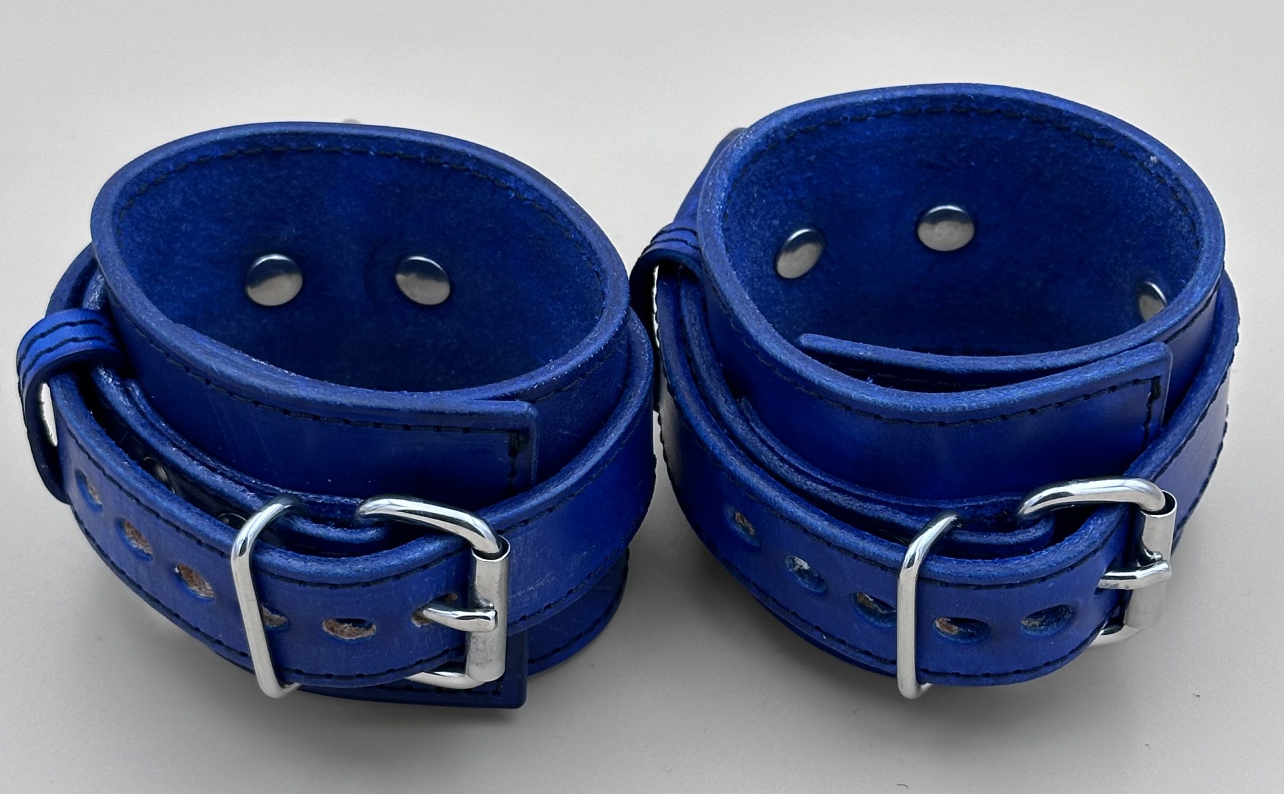 Cobalt Blue Handmade Leather Ankle Cuffs with Black Stitching